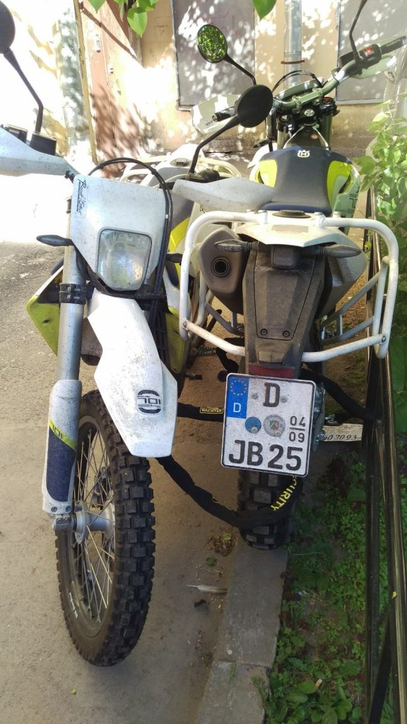 Dort angekommen werden wir erst einmal zur Regestrierung unserer Fahrzeuge (wozu bleibt im Dunkeln) ans andere Ende der Stadt geschickt. Verfahren, täglich mindestens einmal, inklusive. Wir verlieren damit fast eine Stunde, es ist mittlerweile 15 Uhr durch. Jetzt dürfen wir einfahren. Ein paar Fragen zur Maschine, Pass und Zulassung und gut ist. Wir rollen weiter und kommen auf der Grenzbrücke zum Stehen.