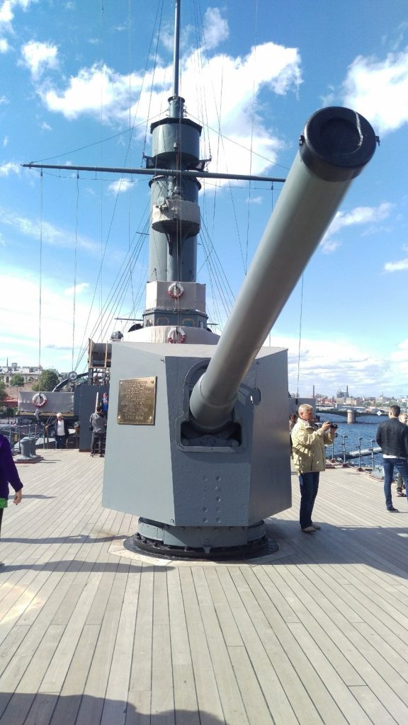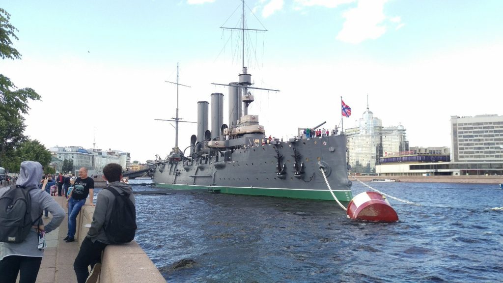 Auch dafür steht etwas weiter der Panzerkreuzer „Aurora“. Jenes Schiff, dass der Legende nach den Signalschuss zum Sturm auf der Winterpalais gegeben haben soll und damit die Oktoberrevolution einläutete.