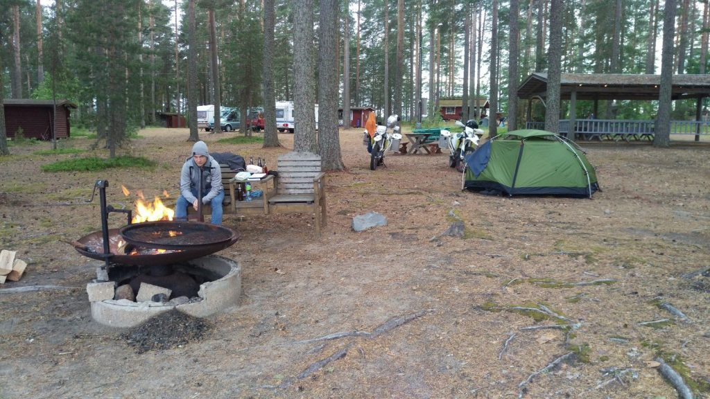 Ein heller Morgen, der innere Wecker klingelt wieder gegen 7.30 Uhr. Erster Tagesordnungspunkt ist Einkaufen für den Abend auf dem Campingplatz. Kein Problem, die Supermärkte habe hier 20 Stunden und mehr pro Tag geöffnet. Nach einer halben Stunde bin ich wieder zurück. Zweiter Punkt heute: Jacobs Kette spannen. Sie hat zu viel Spiel. Dazu muss allerdings der Achsbolzen hinten gelöst werden. Ein M24 Bolzen, normalerweise gekrönt von einer 36-er Schlüsselweite. Na super, das habe ich nicht im Angebot. Abgesehen davon sieht das nicht aus wie eine 36-er, eher wie 34 oder 32. Also mal nach Baumarkt googlen. Keine Ergebnisse. Klar, das finnische Wort dafür ist rautakaupa. Damit geht es. Einer ist in der Nähe. Also schnell mit Motorrad hingefahren – so schnell wie es der Montagmorgen mit seiner tatsächlich vorhandenen Rush Hour zu lässt.