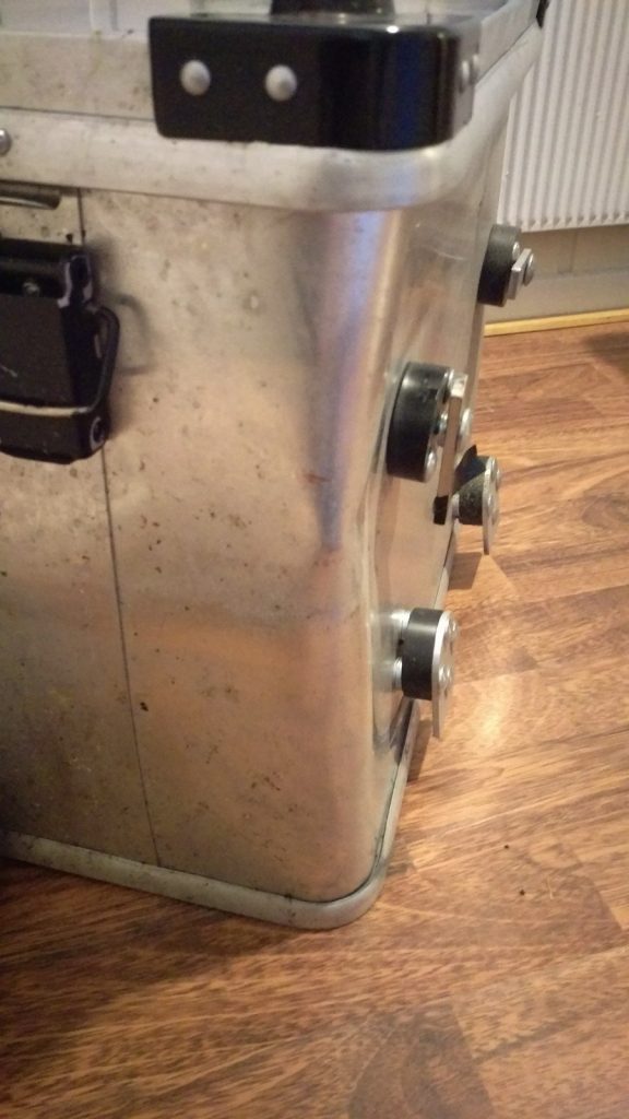 Ich montiere meine Koffer ab, da wir die morgen als Transportkisten für unsere Wandersachen brauchen. Und was entdecke ich? Beim Umfallen gestern auf der Fähre hat mein rechter Koffer etwas abbekommen.
