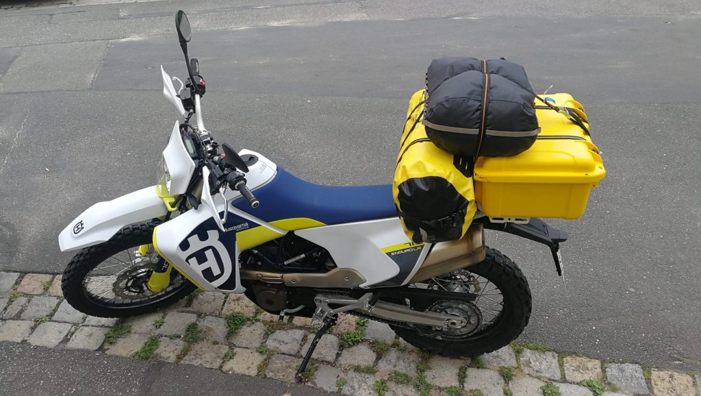 Kompakt und stabil, bin sehr zufrieden. Könnte mit diesem Gepäck sogar auch längere Strecken Offroad fahren, ist aber nicht geplant. Sondern Tagestouren zwischen 60 und 110 km, dann nur mit dem Koffer. Wir werden sehen 😉