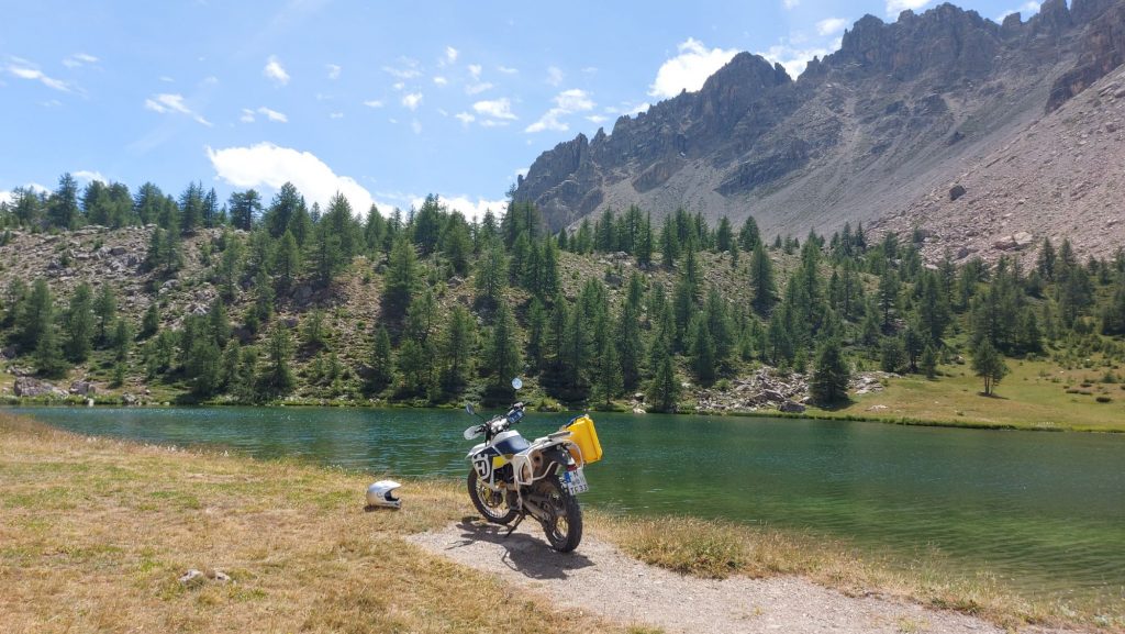 Dafür ist die gesamte Tagestour eine Rundtour! Von Briançon ging es südwärts Richtung Guillestre, dann nach Osten auf die alte Bekannte D902, die bald darauf nach Norden abbiegt und zur Südrampe vom Col d’izoard wird. Das ist eine Traumtour für Moppeds. Auch hier lässt sich viel mit dem Zusammenspiel der beiden Bremsen austesten 😉