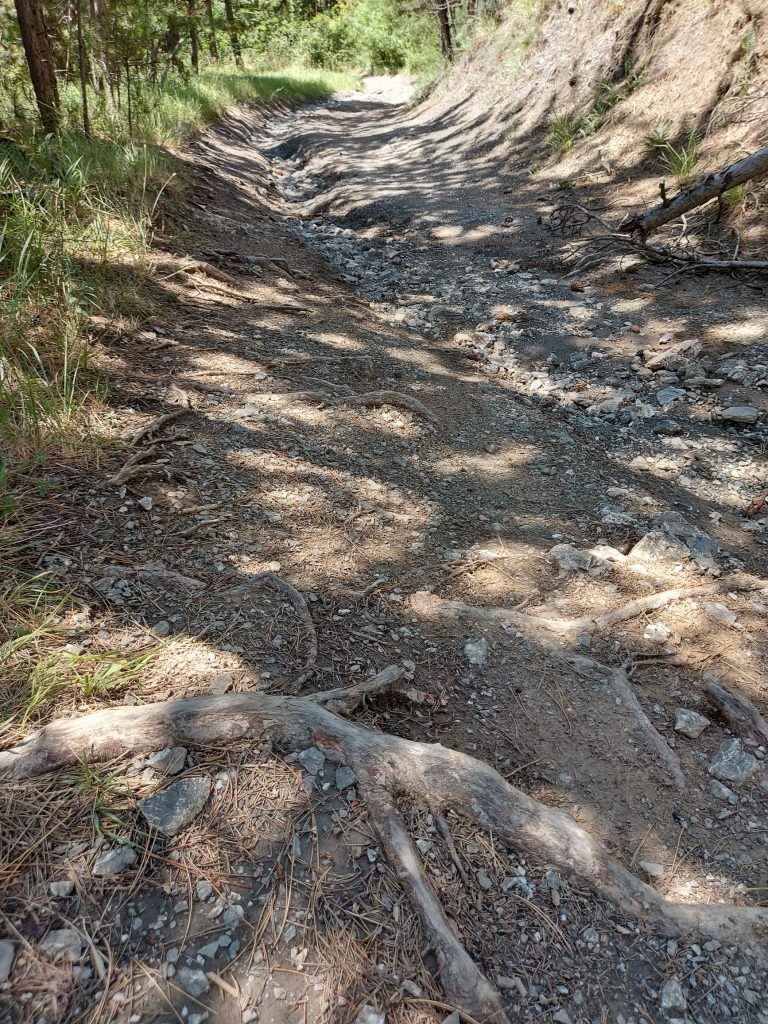 Die Route wird im Führer als steil, ausgewaschen, rutschig, mit Geröll und was weiß ich nicht alles noch, beschrieben. Was soll ich sagen: der Führer hatte recht. Die eigentliche Route ist nur ungefähr 6 km lang, aber das sind 6 km Adrenalin. Ich bin so etwas bisher noch nicht gefahren. Ich würde mich wahrscheinlich sogar zu Fuß schwer tun 😉
